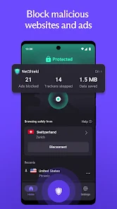 Available on premium plans, NetShield blocks ads, trackers, and malware to create a safer browsing experience.